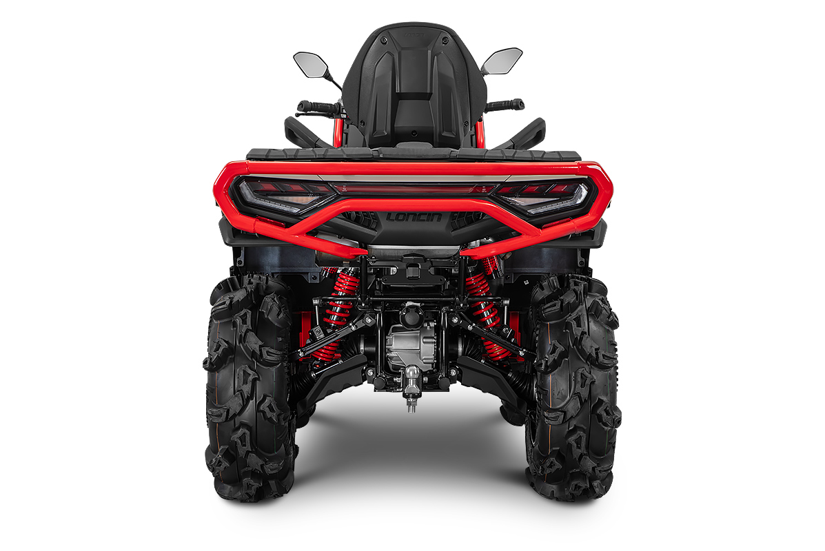 Obří 30palcový kola s beadlock systémem, chladič na předním nosiči, vytažený sání, vylepšená převodovka, samosvornej diferenciál Torsen, ochranný rámy, madla na chladiči i mezi řidítkama, naviják s elektrickou ochranou proti vtažení lana, pancíř hodnej císaře a hafo dalšího.